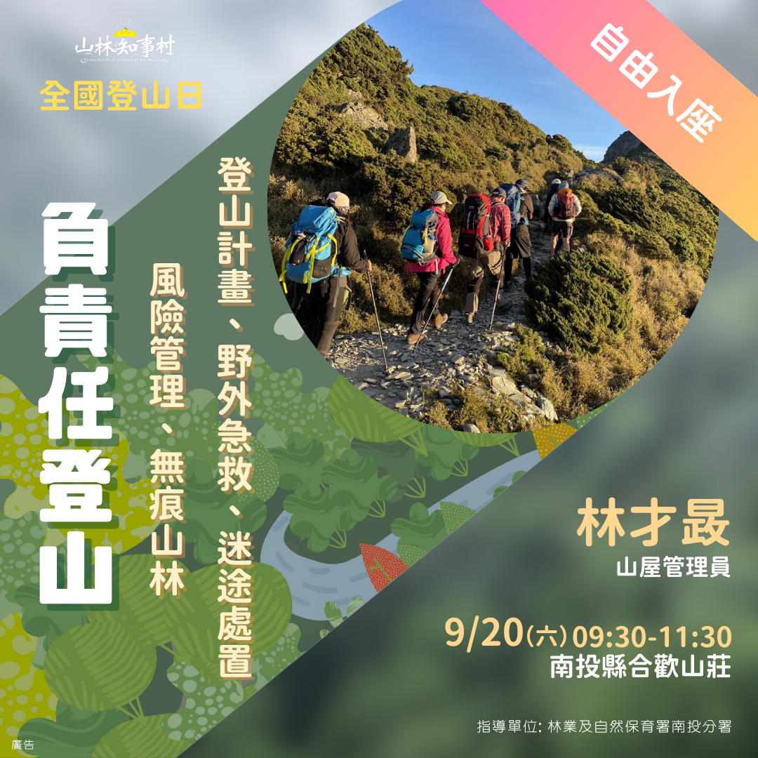 - 無痕山林的概念:認識無痕山林七大原則,了解如何在登山過程中實踐。